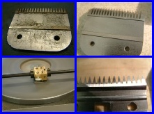 "These wide blades have an inherit problem due to the fact the manufacturer does not use a wide spring instead uses the same spring that is used on standard width blades which causes uneven pressure across the cutter blade against the comb blade, this can be noted in the wear pattern formed on the comb when assembled blade set is test run for 1 minute then cutter removed and look for wear (rub) pattern on comb and you will see wear marks fade at end teeth of comb due to short spring length. This can not be compensated for in the sharpening process."
